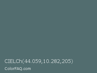 CIELCh 44.059,10.282,205 Color is a normal cyan color and the nearest color is Cadet #536872. Hex code #526d6f and RGB value is rgb(82,109,111). In RGB color space, this color is composed of 32% red, 43% green, 44% blue, In CMYK color space, this color is composed of 26% cyan, 2% magenta, 0% yellow , 56% black , In HSL color space, this color has a hue angle of 184° , 15% saturation and 38% lightness.