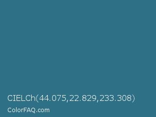 CIELCh 44.075,22.829,233.308 Color is a normal blue color and the nearest color is Calypso #31728d. Hex code #2e7086 and RGB value is rgb(46,112,134). In RGB color space, this color is composed of 18% red, 44% green, 53% blue, In CMYK color space, this color is composed of 66% cyan, 16% magenta, 0% yellow , 47% black , In HSL color space, this color has a hue angle of 195° , 49% saturation and 35% lightness.