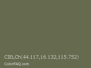 CIELCh 44.117,16.132,115.752 Color is a normal lime color and the nearest color is Siam #646a54. Hex code #666b50 and RGB value is rgb(102,107,80). In RGB color space, this color is composed of 40% red, 42% green, 31% blue, In CMYK color space, this color is composed of 5% cyan, 0% magenta, 25% yellow , 58% black , In HSL color space, this color has a hue angle of 71° , 14% saturation and 37% lightness.