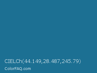 CIELCh 44.149,28.487,245.79 Color is a normal blue color and the nearest color is Matisse #1b659d. Hex code #1c7093 and RGB value is rgb(28,112,147). In RGB color space, this color is composed of 11% red, 44% green, 58% blue, In CMYK color space, this color is composed of 81% cyan, 24% magenta, 0% yellow , 42% black , In HSL color space, this color has a hue angle of 198° , 68% saturation and 34% lightness.
