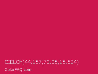 CIELCh 44.157,70.05,15.624 Color is a normal rose color and the nearest color is Pictorial Carmine #c30b4e. Hex code #cc164d and RGB value is rgb(204,22,77). In RGB color space, this color is composed of 80% red, 9% green, 30% blue, In CMYK color space, this color is composed of 0% cyan, 89% magenta, 62% yellow , 20% black , In HSL color space, this color has a hue angle of 342° , 81% saturation and 44% lightness.