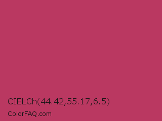 CIELCh 44.42,55.17,6.5 Color is a normal rose color and the nearest color is Rich Maroon #b03060. Hex code #ba3861 and RGB value is rgb(186,56,97). In RGB color space, this color is composed of 73% red, 22% green, 38% blue, In CMYK color space, this color is composed of 0% cyan, 70% magenta, 48% yellow , 27% black , In HSL color space, this color has a hue angle of 341° , 54% saturation and 47% lightness.