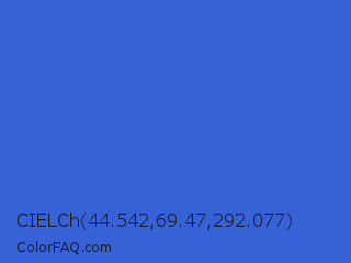 CIELCh 44.542,69.47,292.077 Color is a normal blue color and the nearest color is Royal Blue #4169e1. Hex code #3761d6 and RGB value is rgb(55,97,214). In RGB color space, this color is composed of 22% red, 38% green, 84% blue, In CMYK color space, this color is composed of 74% cyan, 55% magenta, 0% yellow , 16% black , In HSL color space, this color has a hue angle of 224° , 66% saturation and 53% lightness.
