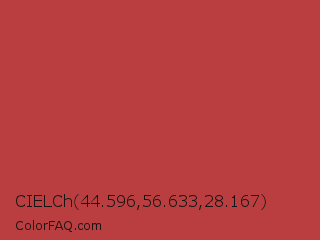 CIELCh 44.596,56.633,28.167 Color is a normal red color and the nearest color is Mojo #c04737. Hex code #ba3e40 and RGB value is rgb(186,62,64). In RGB color space, this color is composed of 73% red, 24% green, 25% blue, In CMYK color space, this color is composed of 0% cyan, 67% magenta, 66% yellow , 27% black , In HSL color space, this color has a hue angle of 359° , 50% saturation and 49% lightness.