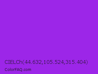 CIELCh 44.632,105.524,315.404 Color is a normal purple color and the nearest color is Veronica #a020f0. Hex code #9c26e8 and RGB value is rgb(156,38,232). In RGB color space, this color is composed of 61% red, 15% green, 91% blue, In CMYK color space, this color is composed of 33% cyan, 84% magenta, 0% yellow , 9% black , In HSL color space, this color has a hue angle of 276° , 81% saturation and 53% lightness.