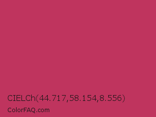 CIELCh 44.717,58.154,8.556 Color is a normal rose color and the nearest color is Dingy Dungeon #c53151. Hex code #bf345e and RGB value is rgb(191,52,94). In RGB color space, this color is composed of 75% red, 20% green, 37% blue, In CMYK color space, this color is composed of 0% cyan, 73% magenta, 51% yellow , 25% black , In HSL color space, this color has a hue angle of 342° , 57% saturation and 48% lightness.