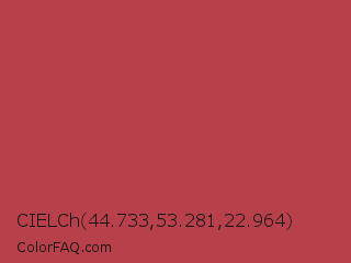 CIELCh 44.733,53.281,22.964 Color is a normal red color and the nearest color is Deep Chestnut #b94e48. Hex code #b8404a and RGB value is rgb(184,64,74). In RGB color space, this color is composed of 72% red, 25% green, 29% blue, In CMYK color space, this color is composed of 0% cyan, 65% magenta, 60% yellow , 28% black , In HSL color space, this color has a hue angle of 355° , 48% saturation and 49% lightness.