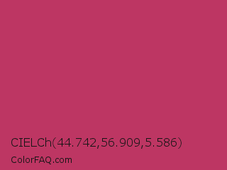 CIELCh 44.742,56.909,5.586 Color is a normal rose color and the nearest color is Hibiscus #b6316c. Hex code #bd3663 and RGB value is rgb(189,54,99). In RGB color space, this color is composed of 74% red, 21% green, 39% blue, In CMYK color space, this color is composed of 0% cyan, 71% magenta, 48% yellow , 26% black , In HSL color space, this color has a hue angle of 340° , 56% saturation and 48% lightness.