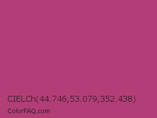 CIELCh 44.746,53.079,352.438 Color is a normal rose color and the nearest color is Mystic Maroon #ad4379. Hex code #b33e77 and RGB value is rgb(179,62,119). In RGB color space, this color is composed of 70% red, 24% green, 47% blue, In CMYK color space, this color is composed of 0% cyan, 65% magenta, 34% yellow , 30% black , In HSL color space, this color has a hue angle of 331° , 49% saturation and 47% lightness.
