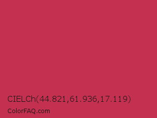 CIELCh 44.821,61.936,17.119 Color is a normal red color and the nearest color is Dingy Dungeon #c53151. Hex code #c4304f and RGB value is rgb(196,48,79). In RGB color space, this color is composed of 77% red, 19% green, 31% blue, In CMYK color space, this color is composed of 0% cyan, 76% magenta, 60% yellow , 23% black , In HSL color space, this color has a hue angle of 347° , 61% saturation and 48% lightness.