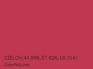 CIELCh 44.898,57.826,18.316 Color is a normal red color and the nearest color is Dingy Dungeon #c53151. Hex code #bf384f and RGB value is rgb(191,56,79). In RGB color space, this color is composed of 75% red, 22% green, 31% blue, In CMYK color space, this color is composed of 0% cyan, 71% magenta, 59% yellow , 25% black , In HSL color space, this color has a hue angle of 350° , 55% saturation and 48% lightness.