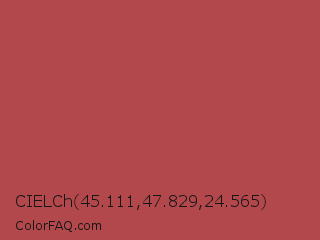 CIELCh 45.111,47.829,24.565 Color is a normal red color and the nearest color is English Red #ab4b52. Hex code #b2484c and RGB value is rgb(178,72,76). In RGB color space, this color is composed of 70% red, 28% green, 30% blue, In CMYK color space, this color is composed of 0% cyan, 60% magenta, 57% yellow , 30% black , In HSL color space, this color has a hue angle of 358° , 42% saturation and 49% lightness.