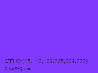 CIELCh 45.142,109.265,309.223 Color is a light violet color and the nearest color is Blue Violet #8a2be2. Hex code #803afc and RGB value is rgb(128,58,252). In RGB color space, this color is composed of 50% red, 23% green, 99% blue, In CMYK color space, this color is composed of 49% cyan, 77% magenta, 0% yellow , 1% black , In HSL color space, this color has a hue angle of 262° , 97% saturation and 61% lightness.