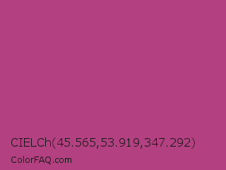 CIELCh 45.565,53.919,347.292 Color is a normal magenta color and the nearest color is Mystic Maroon #ad4379. Hex code #b34181 and RGB value is rgb(179,65,129). In RGB color space, this color is composed of 70% red, 25% green, 51% blue, In CMYK color space, this color is composed of 0% cyan, 64% magenta, 28% yellow , 30% black , In HSL color space, this color has a hue angle of 326° , 47% saturation and 48% lightness.