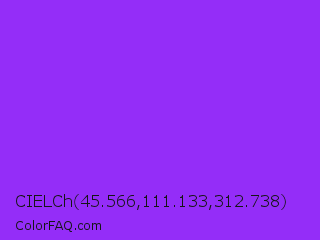 CIELCh 45.566,111.133,312.738 Color is a normal violet color and the nearest color is Veronica #a020f0. Hex code #942df8 and RGB value is rgb(148,45,248). In RGB color space, this color is composed of 58% red, 18% green, 97% blue, In CMYK color space, this color is composed of 40% cyan, 82% magenta, 0% yellow , 3% black , In HSL color space, this color has a hue angle of 270° , 94% saturation and 57% lightness.