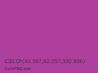 CIELCh 45.567,62.057,332.956 Color is a normal magenta color and the nearest color is Byzantine #bd33a4. Hex code #ad409c and RGB value is rgb(173,64,156). In RGB color space, this color is composed of 68% red, 25% green, 61% blue, In CMYK color space, this color is composed of 0% cyan, 63% magenta, 10% yellow , 32% black , In HSL color space, this color has a hue angle of 309° , 46% saturation and 46% lightness.