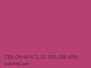 CIELCh 45.671,52.509,358.656 Color is a normal rose color and the nearest color is Raspberry Rose #b3446c. Hex code #b84070 and RGB value is rgb(184,64,112). In RGB color space, this color is composed of 72% red, 25% green, 44% blue, In CMYK color space, this color is composed of 0% cyan, 65% magenta, 39% yellow , 28% black , In HSL color space, this color has a hue angle of 336° , 48% saturation and 49% lightness.