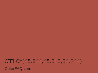 CIELCh 45.844,45.313,34.244 Color is a normal red color and the nearest color is Apple Blossom #af4d43. Hex code #ae5044 and RGB value is rgb(174,80,68). In RGB color space, this color is composed of 68% red, 31% green, 27% blue, In CMYK color space, this color is composed of 0% cyan, 54% magenta, 61% yellow , 32% black , In HSL color space, this color has a hue angle of 7° , 44% saturation and 47% lightness.