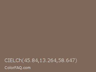 CIELCh 45.84,13.264,58.647 Color is a normal orange color and the nearest color is Pastel Brown #836953. Hex code #7f685a and RGB value is rgb(127,104,90). In RGB color space, this color is composed of 50% red, 41% green, 35% blue, In CMYK color space, this color is composed of 0% cyan, 18% magenta, 29% yellow , 50% black , In HSL color space, this color has a hue angle of 23° , 17% saturation and 43% lightness.