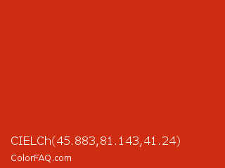 CIELCh 45.883,81.143,41.24 Color is a normal red color and the nearest color is Thunderbird #c02b18. Hex code #cf2d11 and RGB value is rgb(207,45,17). In RGB color space, this color is composed of 81% red, 18% green, 7% blue, In CMYK color space, this color is composed of 0% cyan, 78% magenta, 92% yellow , 19% black , In HSL color space, this color has a hue angle of 9° , 85% saturation and 44% lightness.