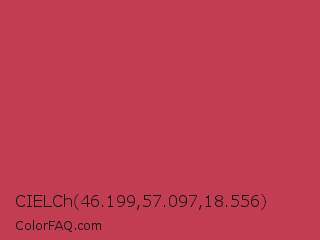 CIELCh 46.199,57.097,18.556 Color is a normal red color and the nearest color is Brick Red #cb4154. Hex code #c23d52 and RGB value is rgb(194,61,82). In RGB color space, this color is composed of 76% red, 24% green, 32% blue, In CMYK color space, this color is composed of 0% cyan, 69% magenta, 58% yellow , 24% black , In HSL color space, this color has a hue angle of 351° , 52% saturation and 50% lightness.