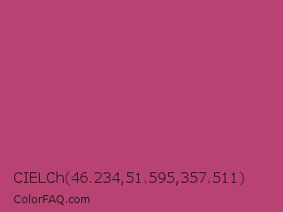 CIELCh 46.234,51.595,357.511 Color is a normal rose color and the nearest color is Raspberry Rose #b3446c. Hex code #b84373 and RGB value is rgb(184,67,115). In RGB color space, this color is composed of 72% red, 26% green, 45% blue, In CMYK color space, this color is composed of 0% cyan, 64% magenta, 38% yellow , 28% black , In HSL color space, this color has a hue angle of 335° , 47% saturation and 49% lightness.