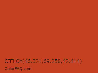 CIELCh 46.321,69.258,42.414 Color is a normal red color and the nearest color is Dark Pastel Red #c23b22. Hex code #c44020 and RGB value is rgb(196,64,32). In RGB color space, this color is composed of 77% red, 25% green, 13% blue, In CMYK color space, this color is composed of 0% cyan, 67% magenta, 84% yellow , 23% black , In HSL color space, this color has a hue angle of 12° , 72% saturation and 45% lightness.