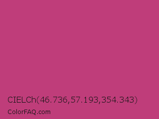 CIELCh 46.736,57.193,354.343 Color is a normal rose color and the nearest color is Fuchsia Rose #c74375. Hex code #bf3d7a and RGB value is rgb(191,61,122). In RGB color space, this color is composed of 75% red, 24% green, 48% blue, In CMYK color space, this color is composed of 0% cyan, 68% magenta, 36% yellow , 25% black , In HSL color space, this color has a hue angle of 332° , 52% saturation and 49% lightness.