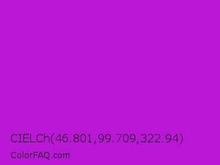 CIELCh 46.801,99.709,322.94 Color is a normal purple color and the nearest color is Vivid Mulberry #b80ce3. Hex code #ba16d6 and RGB value is rgb(186,22,214). In RGB color space, this color is composed of 73% red, 9% green, 84% blue, In CMYK color space, this color is composed of 13% cyan, 90% magenta, 0% yellow , 16% black , In HSL color space, this color has a hue angle of 291° , 81% saturation and 46% lightness.