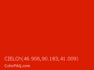 CIELCh 46.906,90.183,41.009 Color is a normal red color and the nearest color is Maximum Red #d92121. Hex code #db1d04 and RGB value is rgb(219,29,4). In RGB color space, this color is composed of 86% red, 11% green, 2% blue, In CMYK color space, this color is composed of 0% cyan, 87% magenta, 98% yellow , 14% black , In HSL color space, this color has a hue angle of 7° , 96% saturation and 44% lightness.