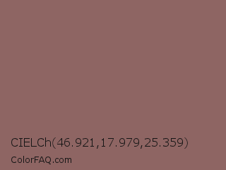 CIELCh 46.921,17.979,25.359 Color is a normal red color and the nearest color is Rose Taupe #905d5d. Hex code #8e6563 and RGB value is rgb(142,101,99). In RGB color space, this color is composed of 56% red, 40% green, 39% blue, In CMYK color space, this color is composed of 0% cyan, 29% magenta, 30% yellow , 44% black , In HSL color space, this color has a hue angle of 3° , 18% saturation and 47% lightness.
