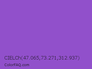 CIELCh 47.065,73.271,312.937 Color is a normal purple color and the nearest color is Deep Lilac #9955bb. Hex code #9150cb and RGB value is rgb(145,80,203). In RGB color space, this color is composed of 57% red, 31% green, 80% blue, In CMYK color space, this color is composed of 29% cyan, 61% magenta, 0% yellow , 20% black , In HSL color space, this color has a hue angle of 272° , 54% saturation and 55% lightness.