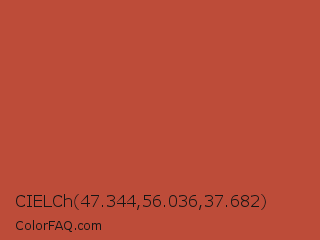 CIELCh 47.344,56.036,37.682 Color is a normal red color and the nearest color is Mojo #c04737. Hex code #bd4c39 and RGB value is rgb(189,76,57). In RGB color space, this color is composed of 74% red, 30% green, 22% blue, In CMYK color space, this color is composed of 0% cyan, 60% magenta, 70% yellow , 26% black , In HSL color space, this color has a hue angle of 9° , 54% saturation and 48% lightness.