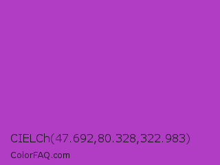 CIELCh 47.692,80.328,322.983 Color is a normal purple color and the nearest color is Dark Orchid #9932cc. Hex code #b03dc4 and RGB value is rgb(176,61,196). In RGB color space, this color is composed of 69% red, 24% green, 77% blue, In CMYK color space, this color is composed of 10% cyan, 69% magenta, 0% yellow , 23% black , In HSL color space, this color has a hue angle of 291° , 53% saturation and 50% lightness.