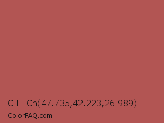CIELCh 47.735,42.223,26.989 Color is a normal red color and the nearest color is Giants Club #b05c52. Hex code #b25553 and RGB value is rgb(178,85,83). In RGB color space, this color is composed of 70% red, 33% green, 33% blue, In CMYK color space, this color is composed of 0% cyan, 52% magenta, 53% yellow , 30% black , In HSL color space, this color has a hue angle of 1° , 38% saturation and 51% lightness.