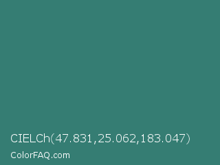 CIELCh 47.831,25.062,183.047 Color is a normal cyan color and the nearest color is Myrtle Green #317873. Hex code #357d73 and RGB value is rgb(53,125,115). In RGB color space, this color is composed of 21% red, 49% green, 45% blue, In CMYK color space, this color is composed of 58% cyan, 0% magenta, 8% yellow , 51% black , In HSL color space, this color has a hue angle of 172° , 40% saturation and 35% lightness.