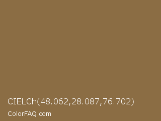 CIELCh 48.062,28.087,76.702 Color is a normal orange color and the nearest color is French Bistre #856d4d. Hex code #8b6d44 and RGB value is rgb(139,109,68). In RGB color space, this color is composed of 55% red, 43% green, 27% blue, In CMYK color space, this color is composed of 0% cyan, 22% magenta, 51% yellow , 45% black , In HSL color space, this color has a hue angle of 35° , 34% saturation and 41% lightness.