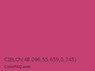 CIELCh 48.096,55.659,0.745 Color is a normal rose color and the nearest color is Fuchsia Rose #c74375. Hex code #c44273 and RGB value is rgb(196,66,115). In RGB color space, this color is composed of 77% red, 26% green, 45% blue, In CMYK color space, this color is composed of 0% cyan, 66% magenta, 41% yellow , 23% black , In HSL color space, this color has a hue angle of 337° , 52% saturation and 51% lightness.