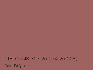 CIELCh 48.307,26.274,26.508 Color is a normal red color and the nearest color is Au Chico #97605d. Hex code #9e6360 and RGB value is rgb(158,99,96). In RGB color space, this color is composed of 62% red, 39% green, 38% blue, In CMYK color space, this color is composed of 0% cyan, 37% magenta, 39% yellow , 38% black , In HSL color space, this color has a hue angle of 3° , 24% saturation and 50% lightness.