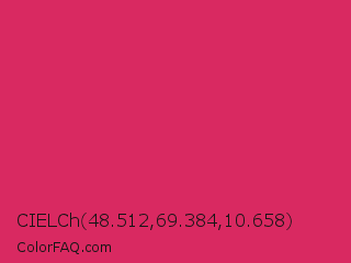 CIELCh 48.512,69.384,10.658 Color is a normal rose color and the nearest color is Cerise Red #de3163. Hex code #d92961 and RGB value is rgb(217,41,97). In RGB color space, this color is composed of 85% red, 16% green, 38% blue, In CMYK color space, this color is composed of 0% cyan, 81% magenta, 55% yellow , 15% black , In HSL color space, this color has a hue angle of 341° , 70% saturation and 51% lightness.