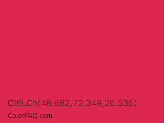 CIELCh 48.682,72.349,20.536 Color is a normal red color and the nearest color is Amaranth #e52b50. Hex code #dc294d and RGB value is rgb(220,41,77). In RGB color space, this color is composed of 86% red, 16% green, 30% blue, In CMYK color space, this color is composed of 0% cyan, 81% magenta, 65% yellow , 14% black , In HSL color space, this color has a hue angle of 348° , 72% saturation and 51% lightness.