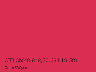 CIELCh 48.848,70.684,18.58 Color is a normal red color and the nearest color is Amaranth #e52b50. Hex code #db2c52 and RGB value is rgb(219,44,82). In RGB color space, this color is composed of 86% red, 17% green, 32% blue, In CMYK color space, this color is composed of 0% cyan, 80% magenta, 63% yellow , 14% black , In HSL color space, this color has a hue angle of 347° , 71% saturation and 52% lightness.