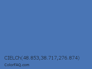 CIELCh 48.853,38.717,276.874 Color is a normal blue color and the nearest color is San Marino #456cac. Hex code #4975b5 and RGB value is rgb(73,117,181). In RGB color space, this color is composed of 29% red, 46% green, 71% blue, In CMYK color space, this color is composed of 60% cyan, 35% magenta, 0% yellow , 29% black , In HSL color space, this color has a hue angle of 216° , 43% saturation and 50% lightness.