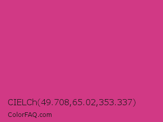 CIELCh 49.708,65.02,353.337 Color is a normal rose color and the nearest color is Magenta Pink #cc338b. Hex code #d13985 and RGB value is rgb(209,57,133). In RGB color space, this color is composed of 82% red, 22% green, 52% blue, In CMYK color space, this color is composed of 0% cyan, 73% magenta, 36% yellow , 18% black , In HSL color space, this color has a hue angle of 330° , 62% saturation and 52% lightness.