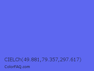 CIELCh 49.881,79.357,297.617 Color is a light blue color and the nearest color is Very Light Blue #6666ff. Hex code #5d67f0 and RGB value is rgb(93,103,240). In RGB color space, this color is composed of 36% red, 40% green, 94% blue, In CMYK color space, this color is composed of 61% cyan, 57% magenta, 0% yellow , 6% black , In HSL color space, this color has a hue angle of 236° , 83% saturation and 65% lightness.