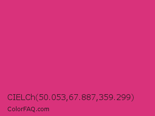 CIELCh 50.053,67.887,359.299 Color is a normal rose color and the nearest color is Telemagenta #cf3476. Hex code #d9327b and RGB value is rgb(217,50,123). In RGB color space, this color is composed of 85% red, 20% green, 48% blue, In CMYK color space, this color is composed of 0% cyan, 77% magenta, 43% yellow , 15% black , In HSL color space, this color has a hue angle of 334° , 69% saturation and 52% lightness.