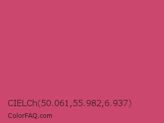 CIELCh 50.061,55.982,6.937 Color is a normal rose color and the nearest color is Ruber #ce4676. Hex code #cc476e and RGB value is rgb(204,71,110). In RGB color space, this color is composed of 80% red, 28% green, 43% blue, In CMYK color space, this color is composed of 0% cyan, 65% magenta, 46% yellow , 20% black , In HSL color space, this color has a hue angle of 342° , 57% saturation and 54% lightness.