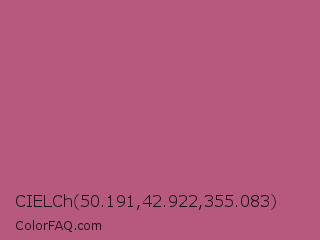 CIELCh 50.191,42.922,355.083 Color is a normal rose color and the nearest color is Tapestry #b05e81. Hex code #b7587f and RGB value is rgb(183,88,127). In RGB color space, this color is composed of 72% red, 35% green, 50% blue, In CMYK color space, this color is composed of 0% cyan, 52% magenta, 31% yellow , 28% black , In HSL color space, this color has a hue angle of 335° , 40% saturation and 53% lightness.