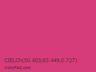CIELCh 50.403,63.449,0.727 Color is a normal rose color and the nearest color is Magenta Pantone #d0417e. Hex code #d53c79 and RGB value is rgb(213,60,121). In RGB color space, this color is composed of 84% red, 24% green, 47% blue, In CMYK color space, this color is composed of 0% cyan, 72% magenta, 43% yellow , 16% black , In HSL color space, this color has a hue angle of 336° , 65% saturation and 54% lightness.