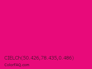 CIELCh 50.426,78.435,0.486 Color is a normal rose color and the nearest color is Red Purple #e40078. Hex code #e80a7a and RGB value is rgb(232,10,122). In RGB color space, this color is composed of 91% red, 4% green, 48% blue, In CMYK color space, this color is composed of 0% cyan, 96% magenta, 47% yellow , 9% black , In HSL color space, this color has a hue angle of 330° , 92% saturation and 47% lightness.